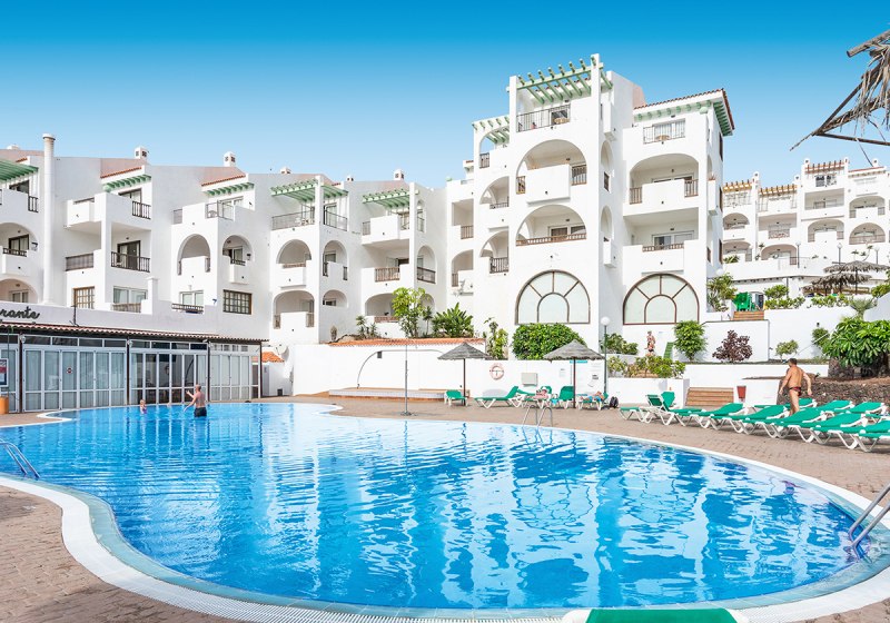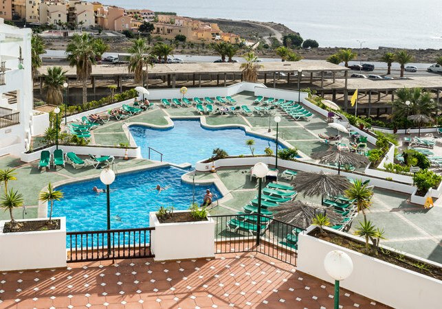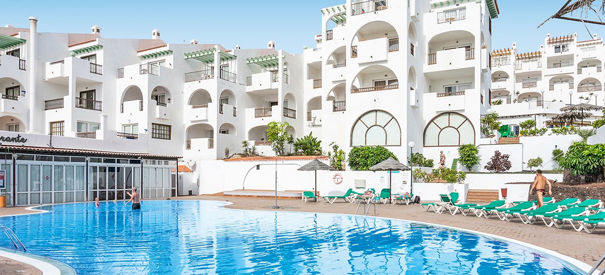 Im BlueSea Callao Garden wohnt Ihr in einem weitläufigen Apartmenthotel in Callao Salvaje, im Süden Teneriffas. 219 Apartments verteilen sich auf 18 niedrige Gebäude mit zwei Etagen und bilden ein entspanntes Ensemble aus Terrassen, Wegen und Gärten. Vier Swimmingpools und ein eigener Kinderpool strukturieren die Anlage, dazu kommen Liegen auf der Sonnenterrasse und eine Poolbar für kurze Pausen.