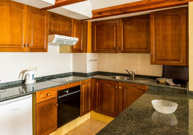 Ihr bezieht Apartments mit separatem Schlafzimmer und Wohnraum – ein unkomplizierter Rahmen für Paare und Familien. Die Küchenecke ist mit Kühlschrank, Mikrowelle, Backofen, Herd und Küchengeschirr ausgestattet. Balkon oder Terrasse öffnet den Blick ins Freie; eine Meerblick-Option ist auswählbar.