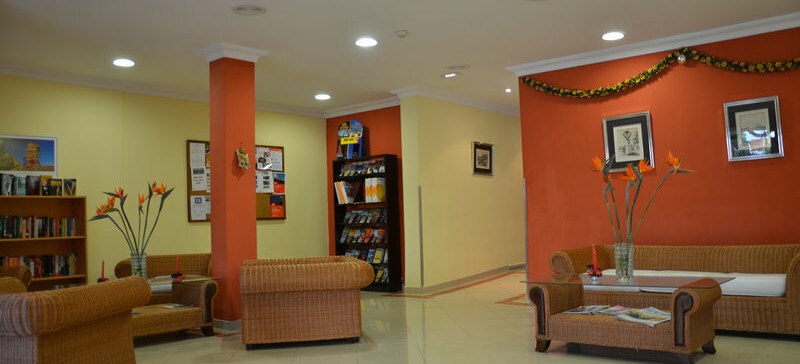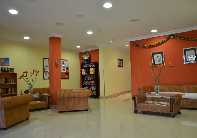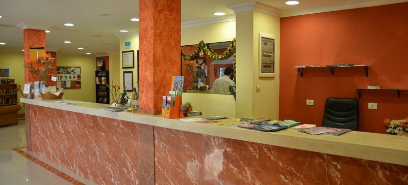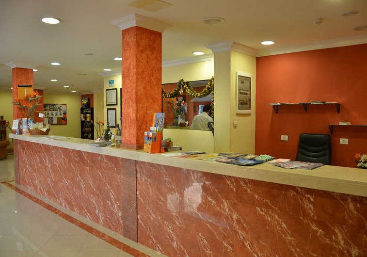 Das Casa Del Sol ist klar strukturiert: 24-Stunden-Rezeption, kostenloses WLAN, Aufzug und ein Empfangsbereich, der die Wege zu Poolterrasse, Restaurant und Bar bündelt. Sonnenliegen und Schirme stehen am Außenpool bereit, die Poolbar versorgt Euch direkt am Wasser. Terrassen- und Außenmöbel schaffen Sitzplätze im Freien, während TV-Raum und Foyer wetterunabhängige Rückzugsorte bieten.