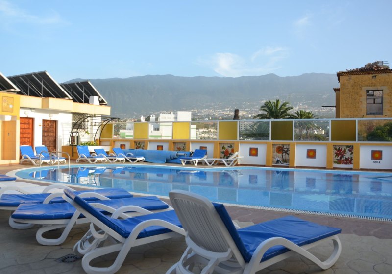 Im Casa Del Sol wohnt Ihr in Puerto de la Cruz, Ortsteil San Fernando, in direkter Nachbarschaft zum Taoropark. Das Haus wirkt angenehm zurückgenommen, überschaubar mit 44 Zimmern und einer klaren Ausrichtung auf unkomplizierte Tage voller Flexibilität. Studios mit eigener Kitchenette geben Euch Freiraum im Tagesablauf, während die gemeinschaftlichen Bereiche – von Lobby bis Poolterrasse – strukturiert und zweckmässig organisiert sind. Ihr bewegt Euch zwischen ruhigem Wohnviertel-Flair und der lebendigeren Küstenstadt, ohne Hektik, mit kurzen Wegen und sauberer Orientierung.