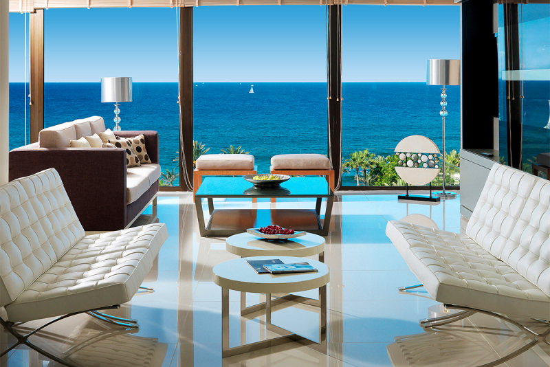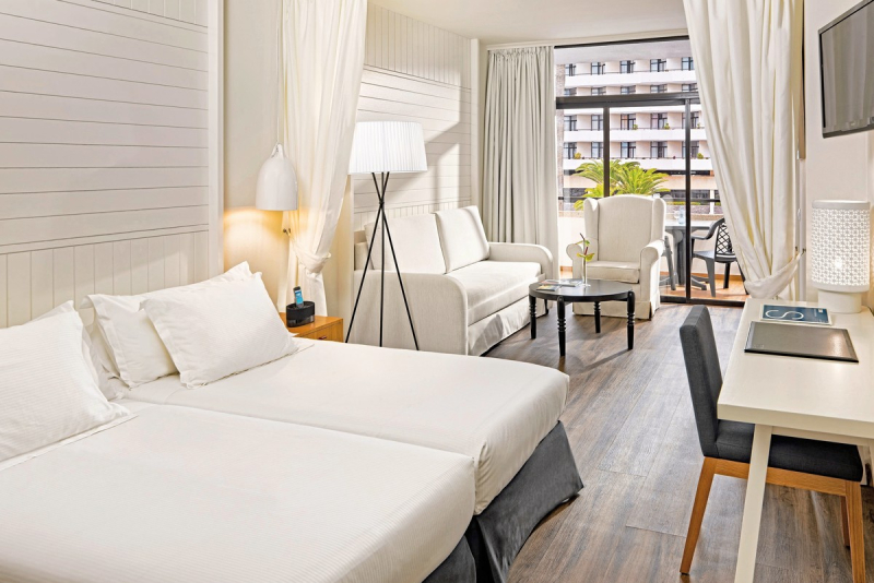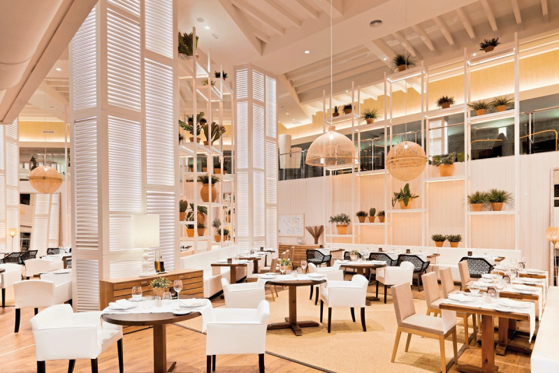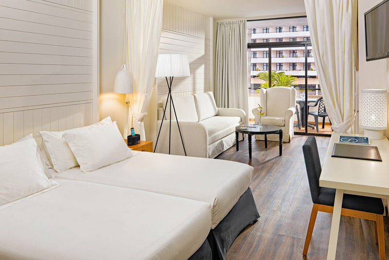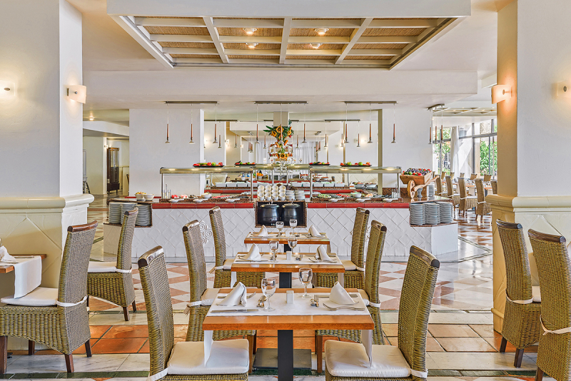 Die lichtdurchfluteten Zimmer mit Holzboden und eleganter, in Weiß gehaltener Ausstattung werden gehobenen Ansprüchen gerecht. Hier finden Sie eine schöne Sitzecke, Sat.-TV, Telefon, Fön und Klimaanlage vor. WLAN nutzen Sie kostenlos, ein Safe ist gegen Unkosten zu mieten. Wahlweise buchen Sie Zimmer Richtung Stadt, Superior-Zimmer Richtung Pool oder Premium-Zimmer mit Blick über das Meer. Die 485 Zimmer verteilen sich über acht Stockwerke.Gastronomie und Restaurants