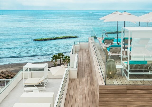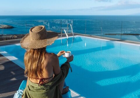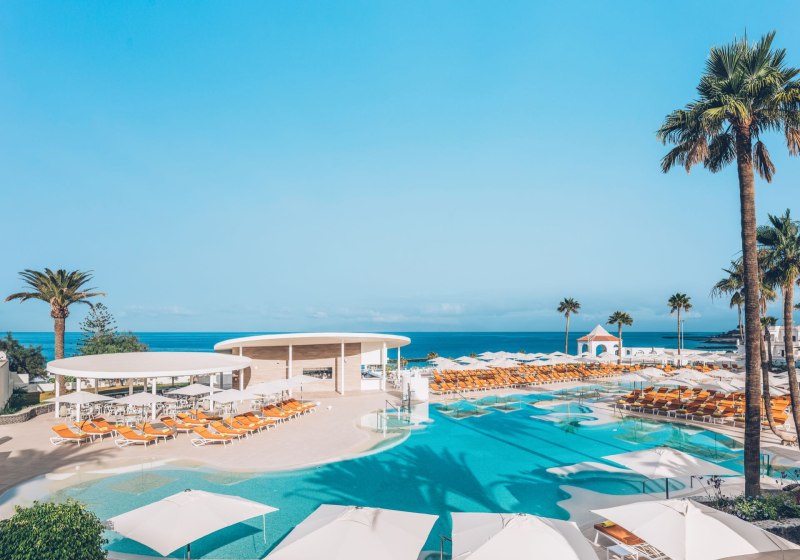 Im Iberostar Selection Sábila wohnt Ihr in einem stilbewussten Adults-only-Refugium ab 16 Jahren, das an der Fußgängerpromenade von Costa Adeje direkt zum Meer führt. Der beheizbare Süßwasserpool, sonnige Terrassen und ruhige Lounge-Bereiche prägen die Atmosphäre. Ihr bewegt Euch zwischen klaren Linien, viel Licht und kurzen Wegen zu Bars, Restaurants und dem Yachthafen Puerto Colón. So fühlt sich Euer Tag strukturiert an: morgens Meerluft, mittags Pool, abends Livemusik – alles angenehm nah.