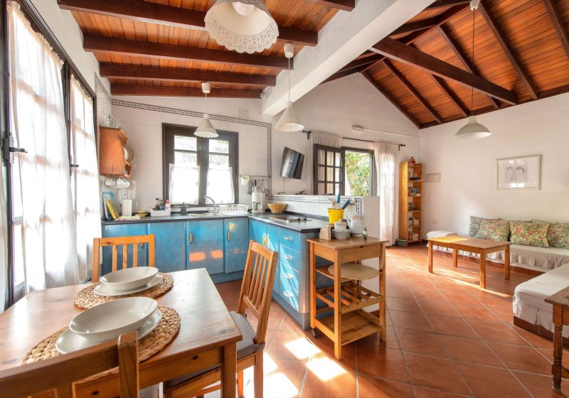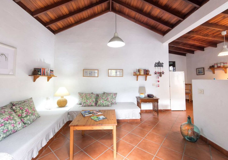 Die Finca liegt bei Chejelipes, etwa sieben Kilometer von San Sebastián de La Gomera entfernt. Damit verbindet Ihr ländliche Ruhe mit kurzer Distanz zur Inselhauptstadt. Das landwirtschaftlich genutzte Umfeld mit Wein- und Obstanbau prägt die Atmosphäre und gibt dem Aufenthalt eine geerdete, klare Note. Ohne touristischen Trubel vor der Tür gestaltet Ihr Euren Tagesablauf frei und ungestört.
