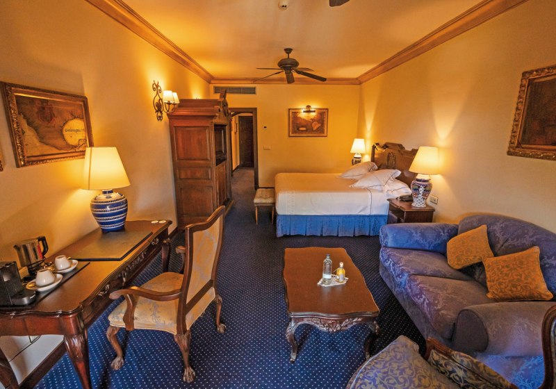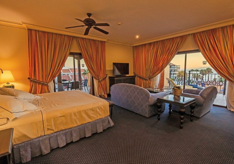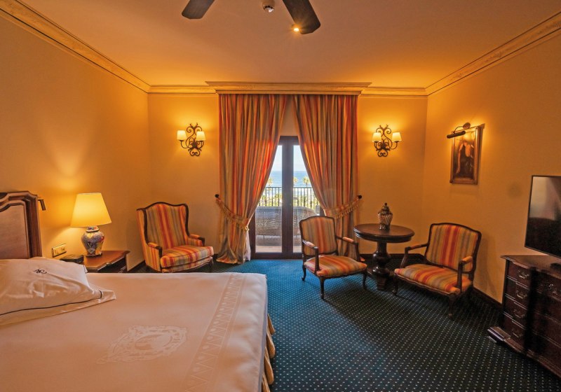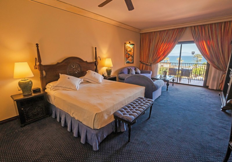151 Zimmer und Suiten verteilen sich auf mehrere Etagen, dazu gehören Juniorsuiten mit Meerblick sowie Suiten mit separatem Schlafzimmer; zwei Royal Suiten bieten zwei Schlafzimmer. Ihr nutzt kostenfreies WLAN in der gesamten Anlage, startet den Tag an einer der Bars oder im Leseraum und wechselt zwischen Sonnenterrasse, Meerwasserschwimmbecken am Strand und dem beheizbaren Pool. Haustiere sind nicht erlaubt, Check-in ist ab 14:30 Uhr, Check-out bis 11:00 Uhr.