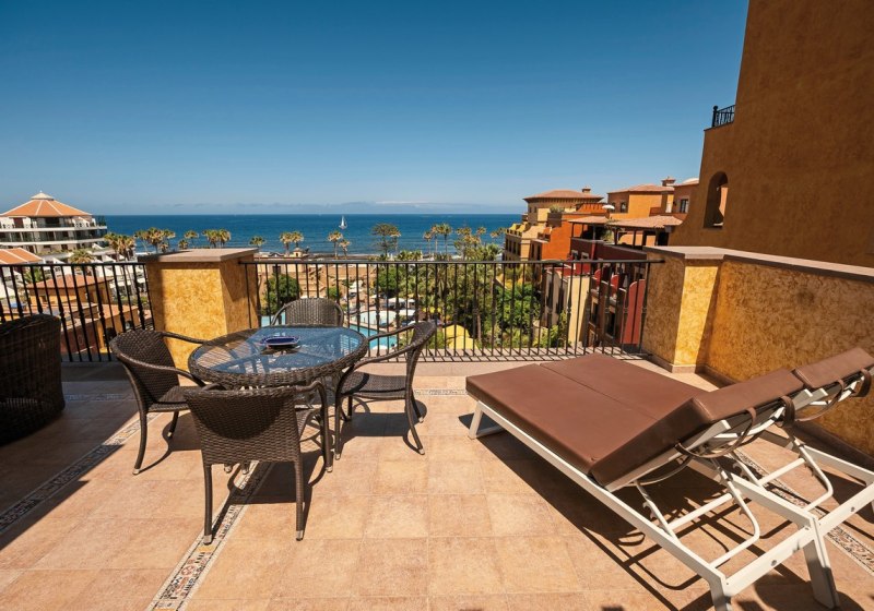 Der Flughafen Teneriffa-Süd ist ca. 20 Kilometer entfernt. Golfer orientieren sich an kurzen Wegen: Golf Las Américas etwa 3 Kilometer, Golf Costa Adeje rund 6 Kilometer, Golf del Sur ca. 12 Kilometer. Die Lage wirkt lebendig und komfortabel angebunden, ohne auf Ruheflächen zu verzichten: Gartenanlage, Sonnenterrassen und der direkte Meeresbezug strukturieren Euren Tag zwischen Strandspaziergang, Einkauf und entspannter Pause am Wasser.