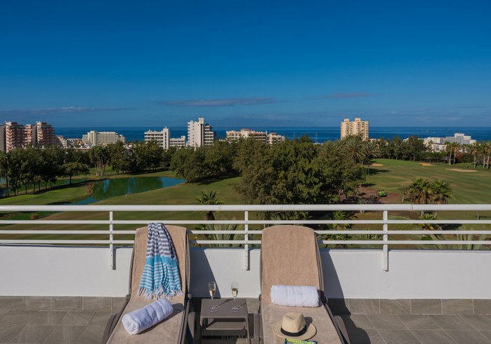 Die Adresse verbindet ruhige Golfplatzlage mit guter Anbindung: am Platz von Playa de las Américas, c/Landa Golf 2 in Arona. Zur Strandpromenade sind es etwa 1,15 Kilometer, nach Los Cristianos rund 3 Kilometer. Einkaufsmöglichkeiten erreicht Ihr nach circa 1,6 Kilometern, den Supermarkt nach ungefähr 1,9 Kilometern.