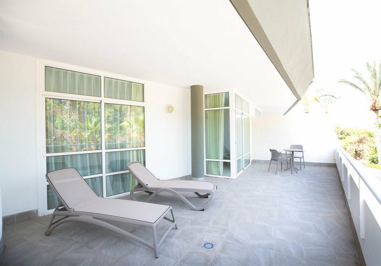 Im Gara Suites Golf & Spa wohnt Ihr in einem weitläufigen Suite-Hotel, das Euch mit klarer Linienführung, luftigen Gemeinschaftsbereichen und viel Tageslicht empfängt. Direkt am Golfplatz gelegen, fühlt sich der Aufenthalt angenehm entspannt und strukturiert an. Zwei Außenpools und eine separate Kinderzone geben Eurem Tag einen ruhigen Rhythmus, während die FKK-Terrasse für Erwachsene mit Panoramablick gezielte Rückzugszeit bietet. Familien, Paare und aktive Golffans finden hier eine verlässliche Basis für erholsame wie abwechslungsreiche Tage in den Ferien.