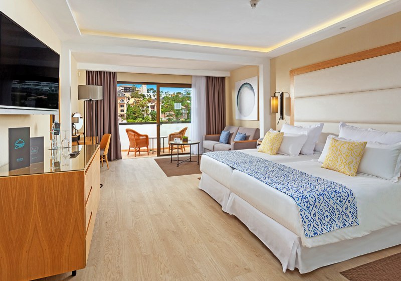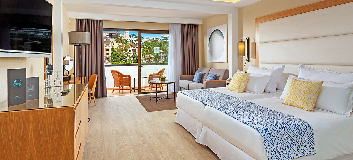 Im Gran Tacande Wellness & Relax wohnt Ihr in einem stilvollen Strandhotel mit 5 Sternen, das direkt an die Promenade von Playa del Duque grenzt. Die weitläufige Gartenanlage mit mehreren Meerwasserpools, Infinity-Pool und Ruhezonen wirkt geordnet und einladend. Kostenloses WLAN im gesamten Haus hält Euch jederzeit verbunden, ob am Pool oder in der eleganten Bar Hall mit Terrasse.