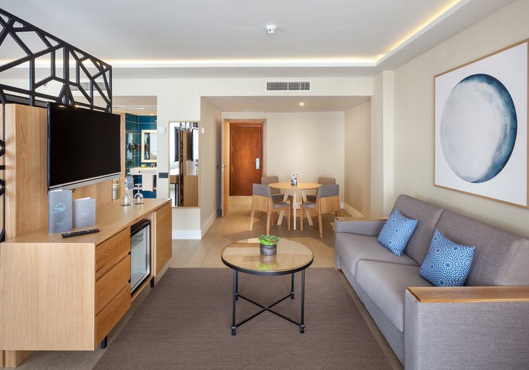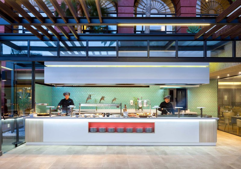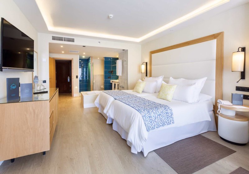 Ihr wählt zwischen Buffetrestaurant und zwei À-la-carte-Optionen: Bocana und Haydée. Ergänzt wird das Angebot durch eine Rooftop Bar, die Bar Hall mit Terrasse, eine Poolbar und eine Snack Bar. So habt Ihr vom Frühstück bis zum späten Drink passende Anlaufpunkte.