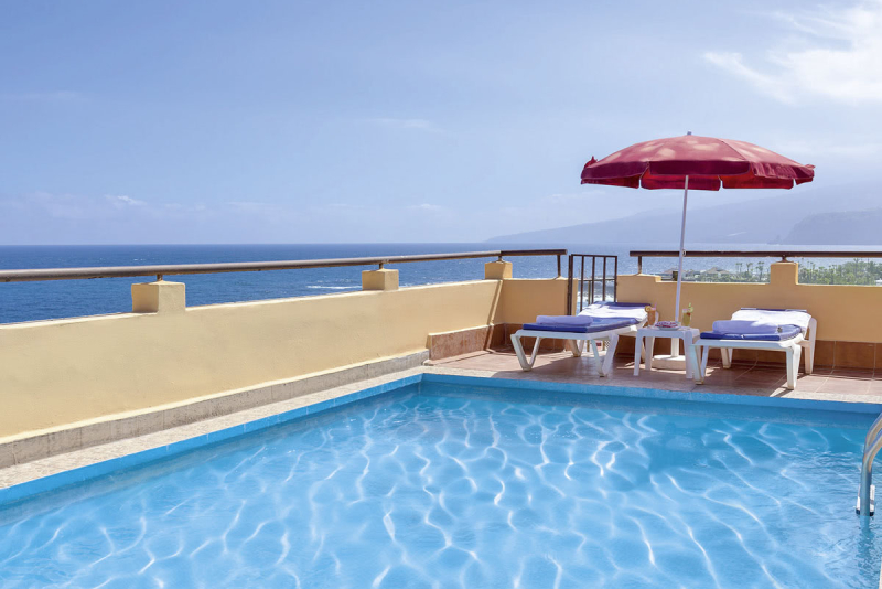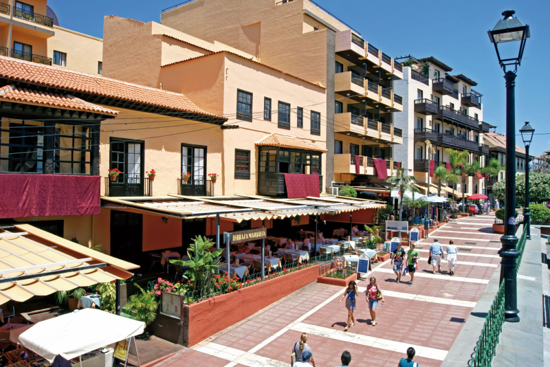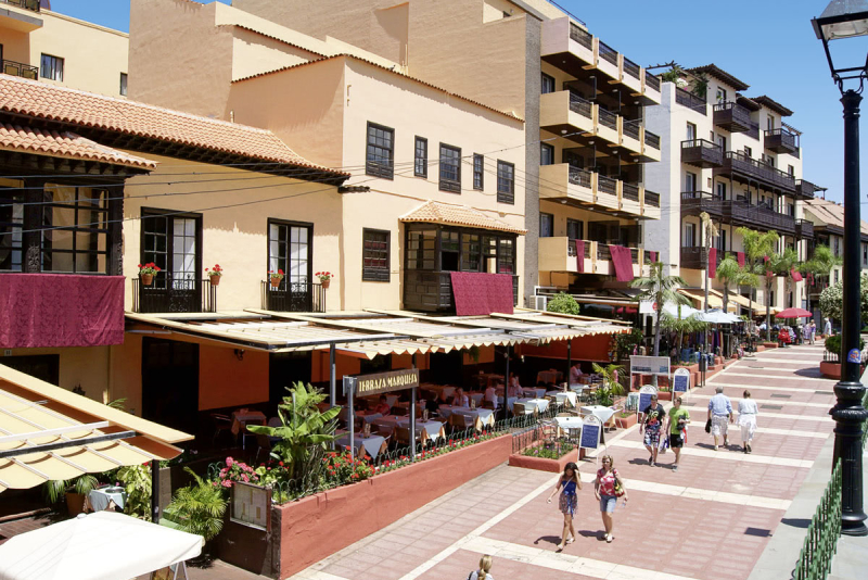 Das Hotel Hotel Marquesa liegt zentral im Ort und der dunkle Sandstrand 'Playa Jardin' ist nur 15 Gehminuten entfernt. Der Flughafen Reina Sofia ist 91 km entfernt und der Flughafen Los Rodeos 28 km. Einkaufsmöglichkeiten sind zu Fuß in 10 Minuten zu erreichen, das Einkaufszentrum Pirámides de Martianez ist 650 m entfernt und Unterhaltungsmöglichkeiten ebenfalls in maximal 10 Minuten zu Fuß zu erreichen.