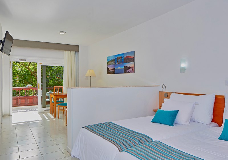 Im Coral Teide Mar wohnt Ihr in einem entspannten Apartmenthotel in La Paz, Puerto de la Cruz, mit dem Gefühl von Freiheit und Eigenständigkeit. Die 141 Studios bieten Euch Raum zum Ankommen, eine Kitchenette für kleine Mahlzeiten und einen Balkon oder eine Terrasse für Zeit im Freien. Der große, 4000 m² umfassende Garten mit Liegewiese strukturiert den Tag angenehm: erst ein Spaziergang unter Grün, dann eine Runde im Außenpool, der in den kühleren Monaten beheizbar ist. Mit Halbpension-Option, Frühstücksbuffet und Poolbar bestimmt Ihr selbst das Tempo zwischen Ruhe und Aktivität.