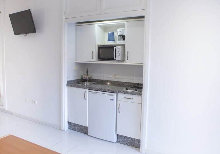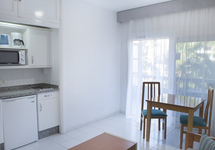 Die Studios des Coral Teide Mar bieten rund 35 m² Raum mit Kitchenette, sodass Ihr Snacks, Kaffee oder kleine Gerichte bequem selbst zubereitet. Balkon oder Terrasse öffnet den Aufenthalt nach draußen – ideal für Frühstück an der Luft oder eine späte Lektüre. Bad/WC, Föhn, TV, Telefon und Safe bilden die funktionale Basis, ergänzt durch WLAN für Planung und Kommunikation.