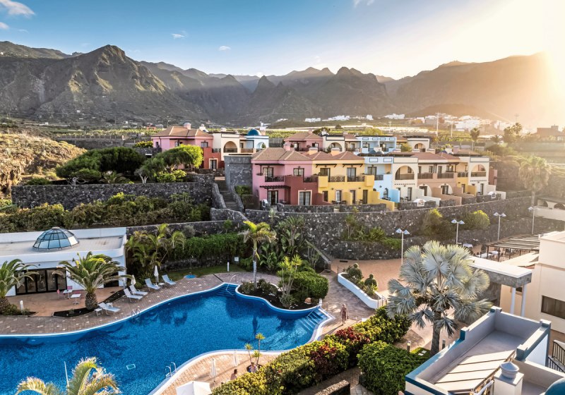 Die Nordwestküste Teneriffas bildet die Kulisse: Das Hotel Luz del Mar liegt ruhig und ländlich am Fuß des Teno-Gebirges. Bis zum Felsstrand sind es etwa 200 Meter, das Ortszentrum erreicht Ihr nach rund 1,8 bis 2 Kilometern. Wer golfen möchte, findet den nächsten Platz in rund 5 bis 6 Kilometern Entfernung.