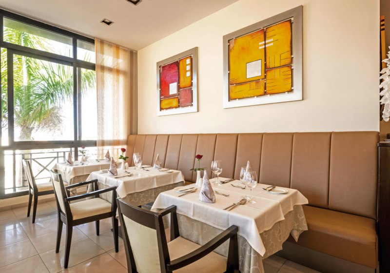 Kulinarisch führt Euch das Hotel Luz del Mar in ein À-la-carte-Restaurant mit regionalem Bezug. Obst und Gemüse stammen aus eigenem Anbau, weitere Zutaten werden regional eingekauft – frisch gedacht, klar umgesetzt. Am Morgen startet Ihr mit einem Frühstücksbuffet, tagsüber und abends ergänzen Bar und Poolbar den Genuss mit Drinks und Kleinigkeiten. Highlight: Küche mit eigenem Anbau und regionaler Einkaufslinie.