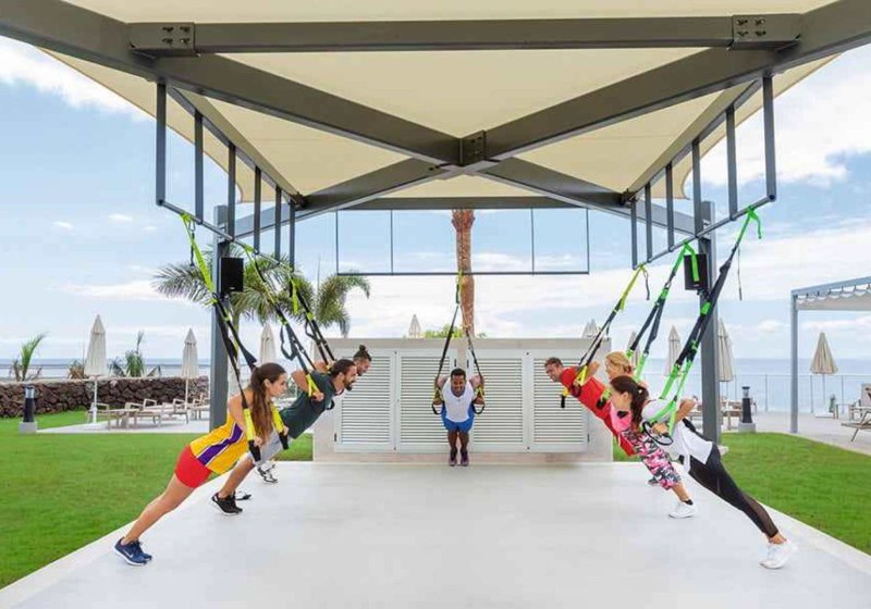 Für aktive Erholung nutzt Ihr den Fitnessraum und Gruppenfitness-Kurse. Zusätzlich ist eine Sauna ausgewiesen – perfekt für einen kurzen Gang nach Sport oder Pool. Ruhezonen entstehen auf Terrassen und entlang der Wasserflächen, die Anlage bleibt dabei übersichtlich. Highlight: Kombination aus Infinity-Pool, Fitness und Sauna.