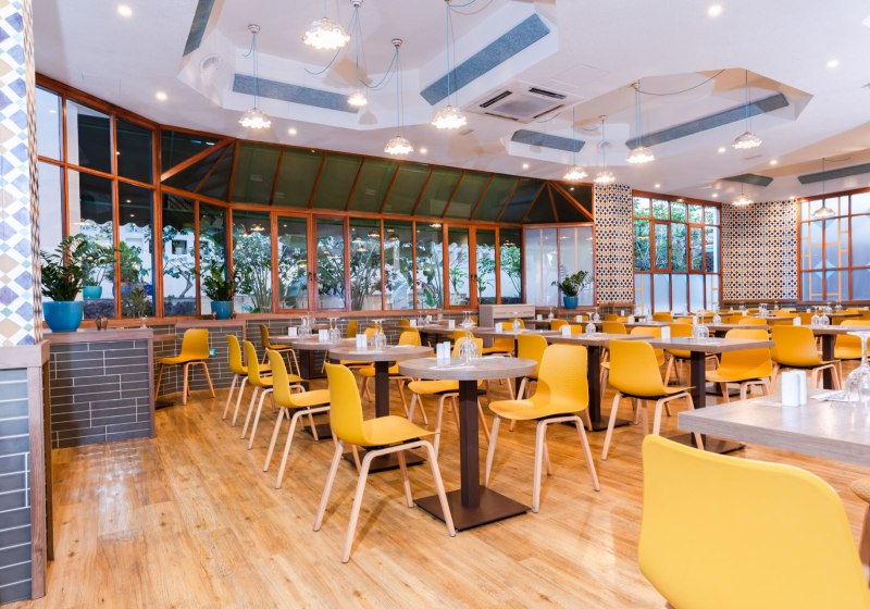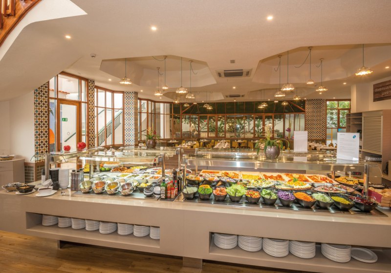 Im Nichtraucher-Restaurant Ceramika esst Ihr in klarer, aufmerksamer Atmosphäre. Die Bar Gomera und die Pool-/Snackbar Guacamayo versorgen Euch tagsüber und am Abend mit Getränken und Snacks. Verpflegungsarten reichen von Frühstück über Halb- und Vollpension bis hin zu All Inclusive, ergänzt durch Snacks.
