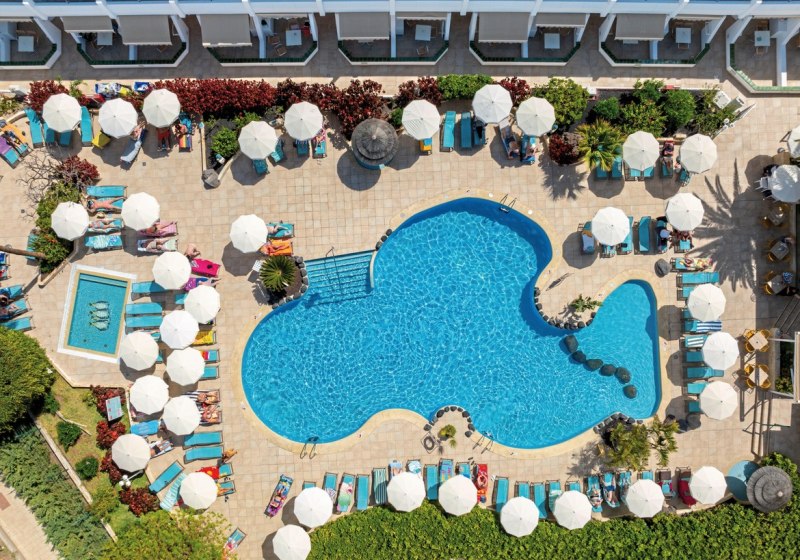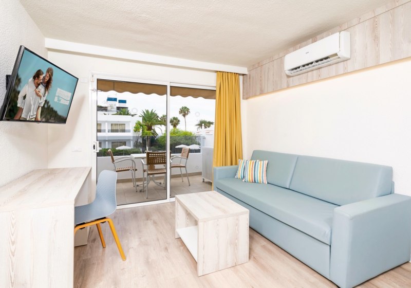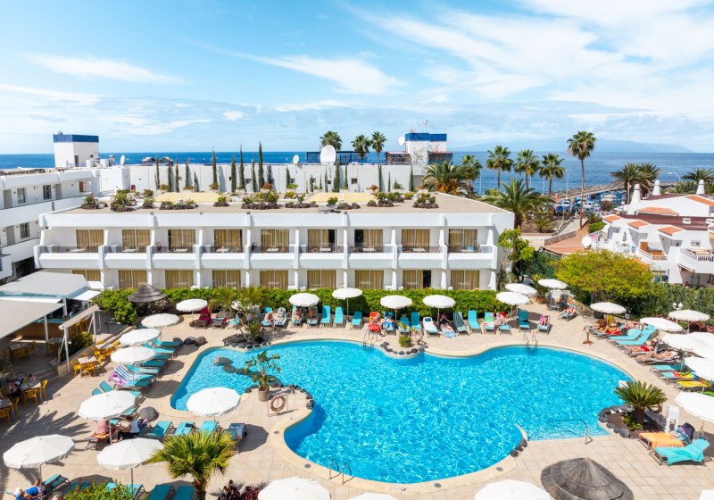 Der beheizbare Salzwasserpool im Winter, die Sonnenterrasse mit Liegen und Schirmen und ein separates Kinderbecken bilden den ruhigen Mittelpunkt. Livemusik setzt abends Akzente, tagsüber nutzt Ihr WLAN in der gesamten Anlage oder greift auf Services wie 24-Stunden-Rezeption, Münzwäscherei und Aufzug zurück. Kurze Distanzen zum Sandstrand und zu Puerto Colón prägen den Aufenthalt.