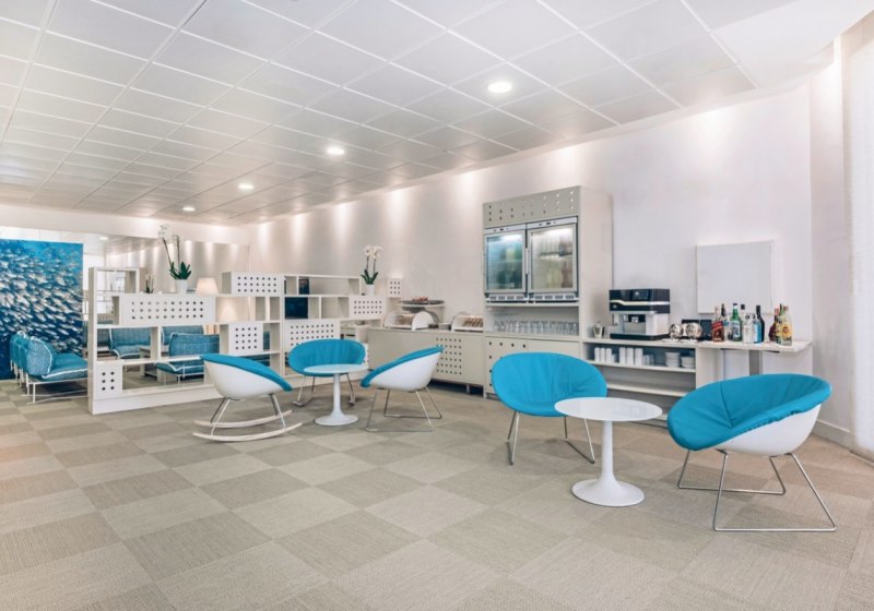 - Gute Orientierung: Empfangshalle, Sitzgruppen und Lifte strukturieren Wege und Bereiche.