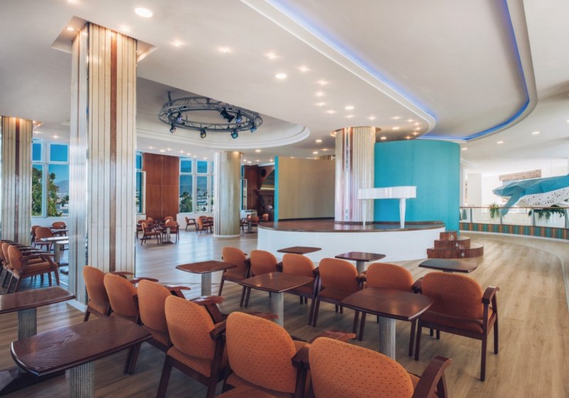 In der Empfangshalle mit Rezeption und Sitzgruppen beginnt Euer Tag reibungslos. Vier Lifte und ein Panoramalift verbinden die Etagen, die Gartenanlage öffnet sich zu Sonnenterrassen mit Liegen und Schirmen. WLAN ist im gesamten Hotel inklusive, Handtücher erhaltet Ihr gegen Kaution. Souvenirladen und Friseursalon decken kleine Bedürfnisse elegant ab.
