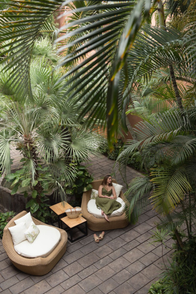 - Ruhiger Patio: Innenhof mit Springbrunnen als entspannter Treffpunkt.