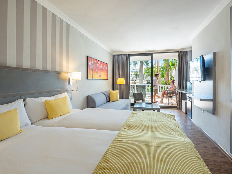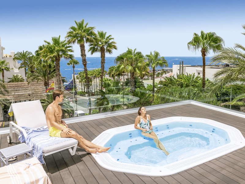 Die Dachterrasse „Terraza Chillout“ öffnet den Blick aufs Meer. Für Abwechslung sorgen Poolbar, Swim-up Bar und ein Hallenbad bei wechselndem Wetter. Praktisches wie Gepäckaufbewahrung, Mietwagen- und Fahrradverleih, Weckdienst sowie medizinische Betreuung ergänzt den Komfort. Highlight: Dachterrasse mit Meerblick als ruhiger Rückzugsort über dem Geschehen.