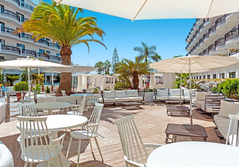 Unten verführt das Buffet im „Areca“, abends lockt der „Santa Rosa Grill“ mit À-la-carte-Gerichten. Dazwischen wählt Ihr Euren Lieblingsplatz: die Rooftop Bar „Café del mar“, die Poolbar oder die stimmungsvolle Cocktailbar im Haus. Kostenfreies WLAN im gesamten Hotel, ein Fitnessraum sowie die exklusive Lounge (gegen Gebühr) schaffen Komfort und Rückzugsräume – ebenso wie die diskret angelegte FKK-Sonnenterrasse mit Duschen und Liegen.