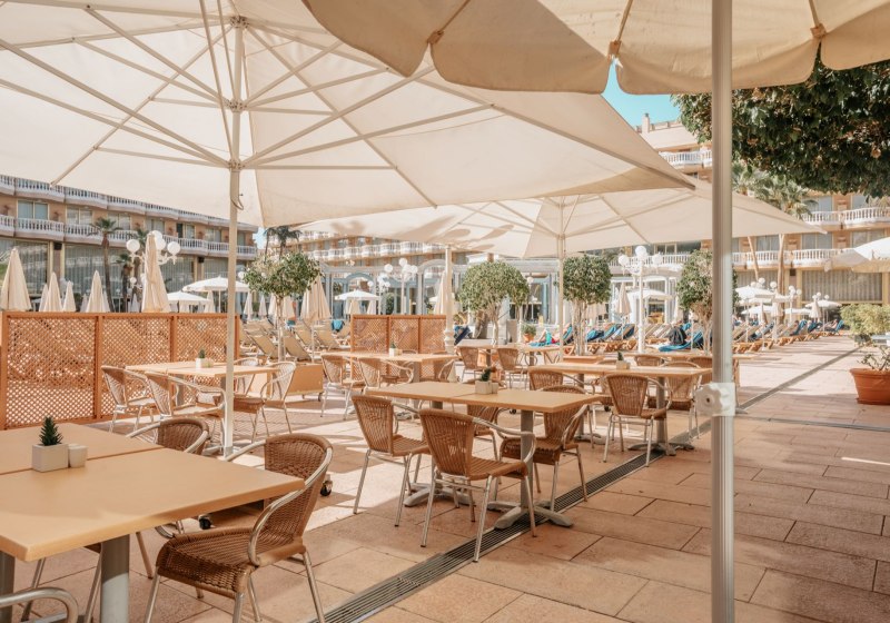 Der Tag am Pool wird unkompliziert, denn Snacks und Drinks sind schnell zur Hand. Für den Aperitif am Abend bietet die Bar Hall einen passenden Rahmen. Die Nähe zur Promenade erweitert Eure kulinarische Karte zusätzlich um Restaurants und Cafés in Laufweite. So kombiniert Ihr Hotelkomfort mit gastronomischer Freiheit. Highlight: Pool-Snack-Bar für den kurzen Hunger zwischendurch.