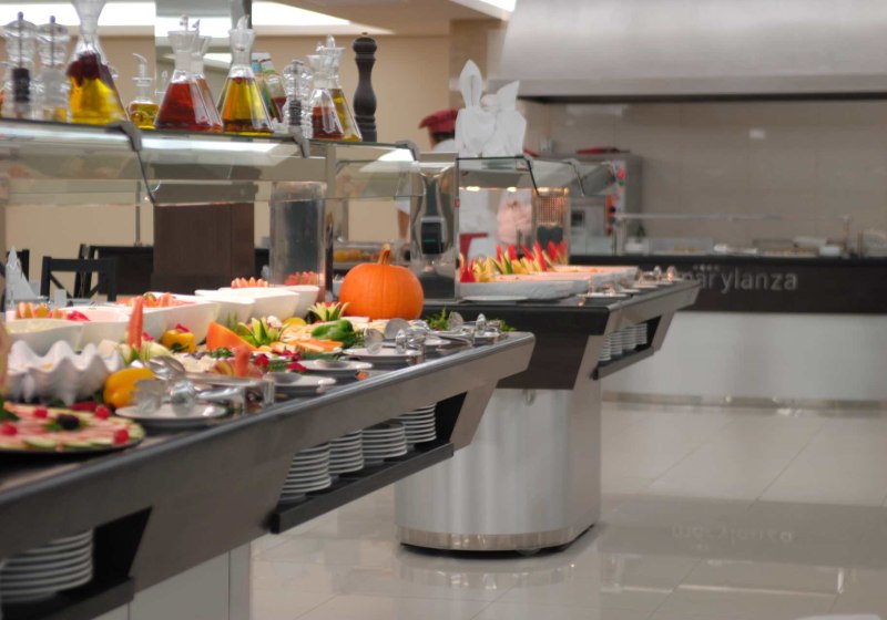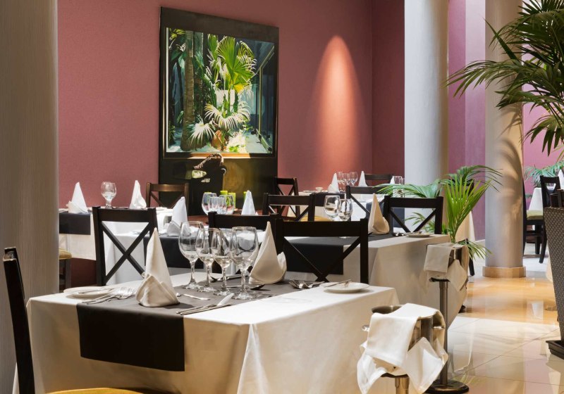Im Hauptrestaurant genießt Ihr internationale und thematische Buffets, dazu zwei spezialisierte Optionen: ein Gourmet-Themenrestaurant und Teppanyaki für präzise zubereitete Gerichte am heißen Grill. Poolbar und Cafetería-Bar versorgen Euch tagsüber mit kühlen Drinks und kleinen Stärkungen – nah an Liegen und Wasser.