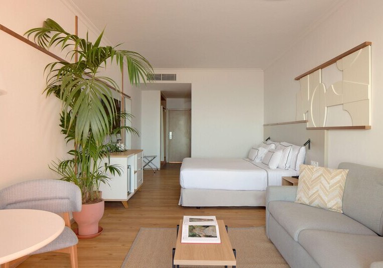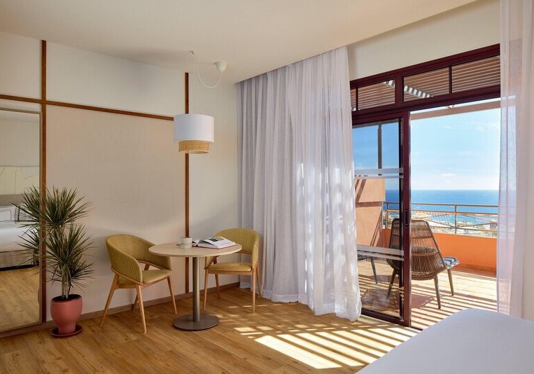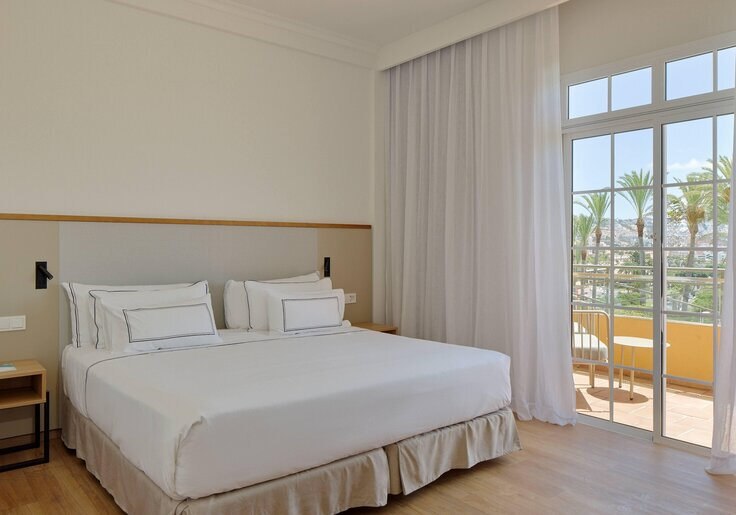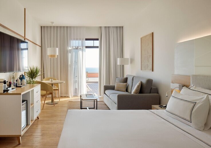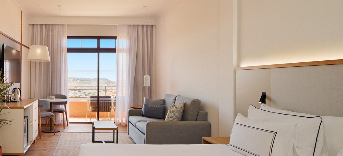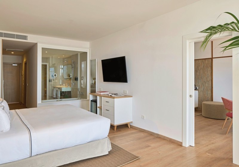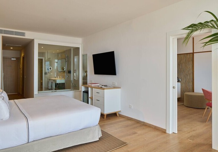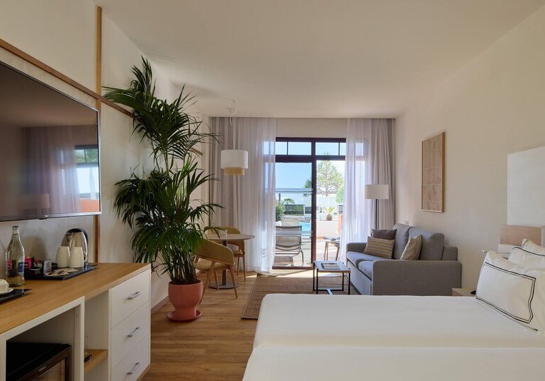 Die Atmosphäre wirkt geordnet, entspannt und stilsicher: Empfangshalle, Mirador-Aussichtsturm und klare Wegeführung verbinden Rückzugsorte mit geselligen Bereichen wie Retama Lounge Bar und Poolbar. Mit 290 Zimmern auf acht Etagen, WLAN in den öffentlichen Bereichen inklusive und Hotelshuttle zum Strand findet Ihr eine strukturierte Basis für erholsame Tage in den Ferien. Highlight: Adults-only-Hotel auf Anhöhe mit The-Level-Lounge und Pool.