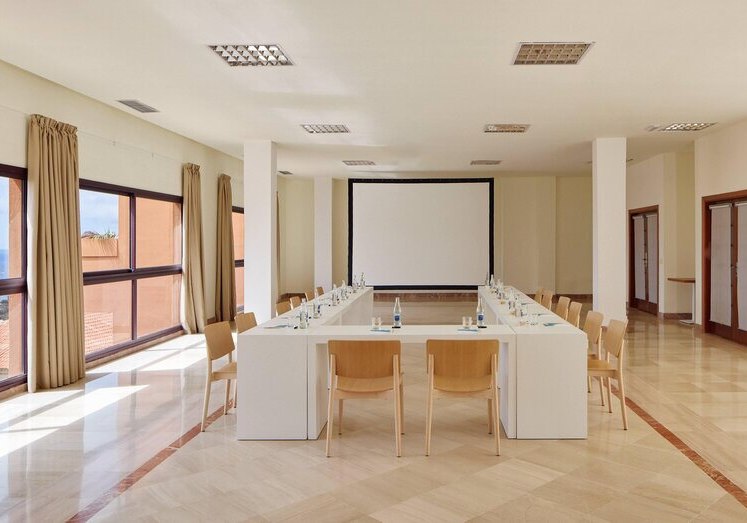 Konferenzraum und Empfangshalle bieten formale Treffpunkte, der Mirador schafft Weitblick. Zusätzliche Services wie Gepäckaufbewahrung, Wäscherei, Friseur, Shops, Tour-Desk, Mietwagen- und Fahrradverleih, Motorroller-Verleih, EV-Ladestation, Zimmerservice sowie Hochzeitsservices runden das Angebot ab. Highlight: Mirador-Aussichtsturm als markanter Treffpunkt über dem Meer.