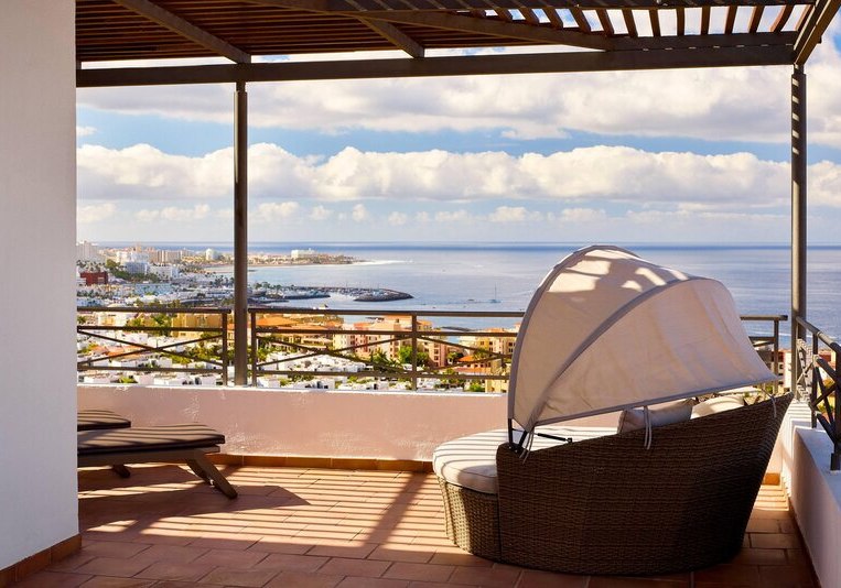 Das Hotel liegt auf einer Anhöhe oberhalb des Sandstrands Playa del Duque. Ihr spaziert in etwa zehn Gehminuten hinunter an die Küste oder nutzt den Hotelshuttle. Die erhöhte Lage bringt Ruhe und klare Ausblicke, der Mirador-Aussichtsturm setzt dazu einen markanten Orientierungspunkt im Gelände. So kombiniert Ihr Rückzug am Hang mit schneller Strandnähe.