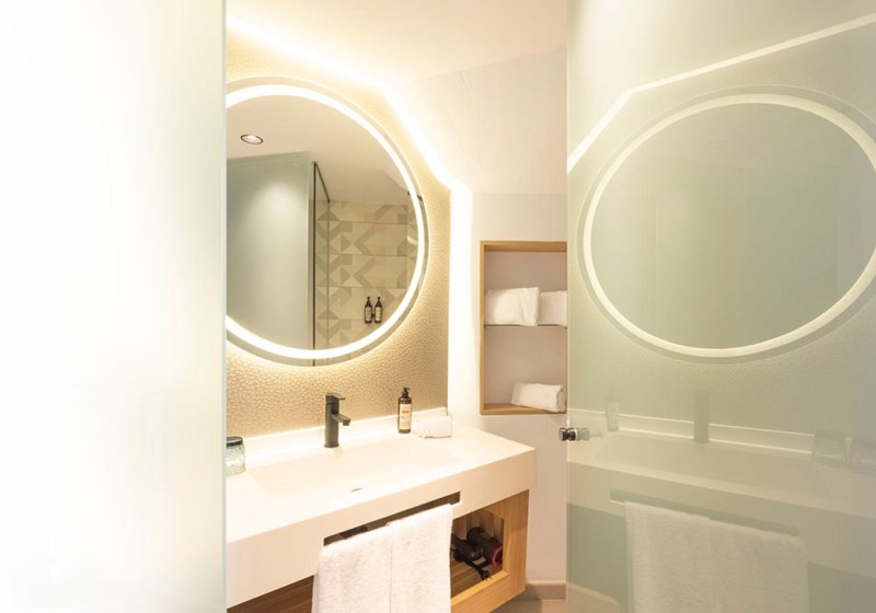 Jedes Zimmer öffnet sich auf einen Balkon oder eine Terrasse – Luft und Licht gehören zum Wohngefühl. Für den Ausblick habt Ihr die Wahl: seitlicher Meerblick, um das Blau einzurahmen, oder Poolblick für das lebendige Zentrum. Suiten bringen ein separates Schlafzimmer mit eigener Klimaanlage, ideal, wenn Ihr Zonen für Ruhe und Wohnen trennen wollt. So entsteht ein klares, funktionales Setting, das Euren Tag vom ersten Kaffee bis zum späten Film strukturiert begleitet.