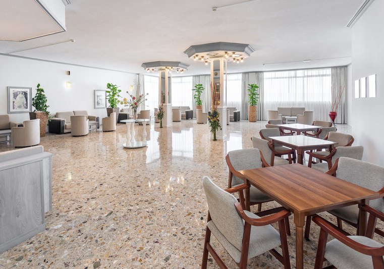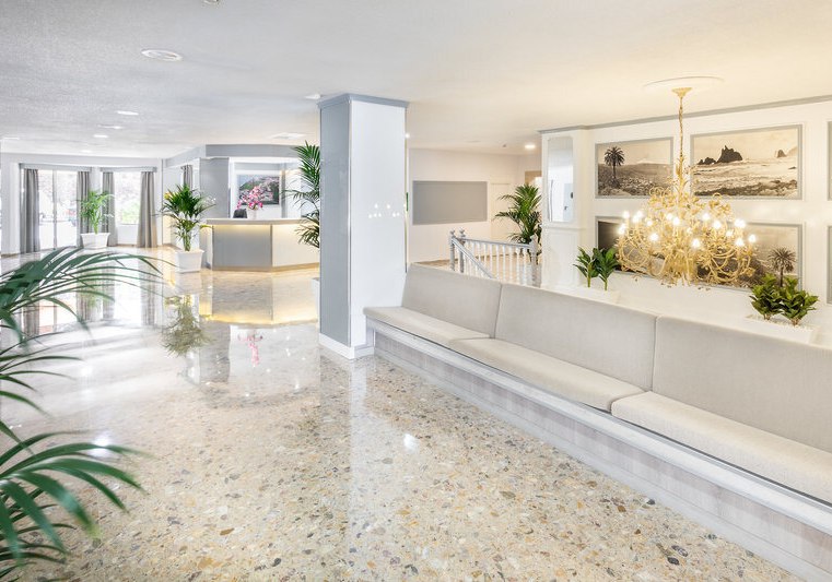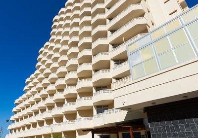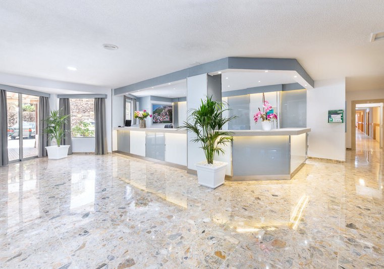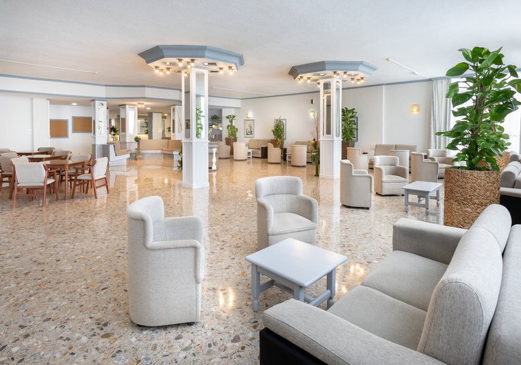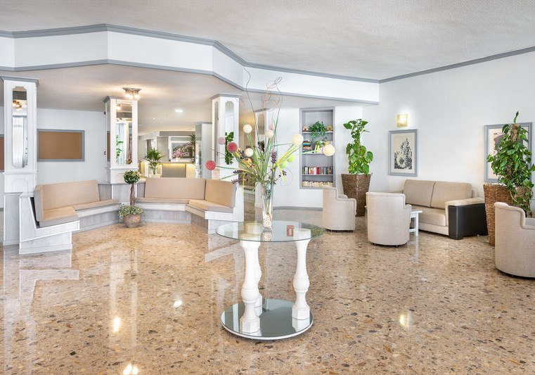 Die Ferienanlage umfasst 225 Einheiten in einem Haus mit 13 Etagen und zwei Liften. Empfangshalle mit 24‑h‑Rezeption, Aufenthaltsräume mit Fernsehecke sowie ein TV‑Raum strukturieren die öffentlichen Bereiche. WLAN steht in der Lobby zur Verfügung, mehrsprachiges Personal unterstützt bei Fragen und Reservierungen.