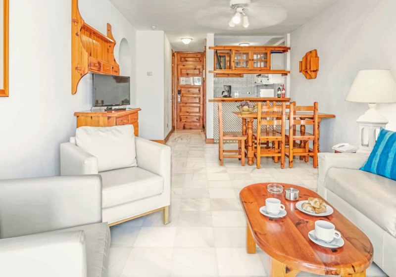 Der Aufenthalt fühlt sich flexibel an: Studios mit Kitchenette und Appartements mit separatem Schlafzimmer lassen Euch Euren Rhythmus bewahren. Das Zentrum von Playa de las Américas und Los Cristianos liegt in Gehweite, sodass Ihr Strandtage, Bummel durch Shopping-Arkaden und abendliche Restaurantbesuche mühelos verbindet. Servicepunkte wie zentrale Rezeption, WLAN im Rezeptionsbereich, Supermarkt in der Anlage sowie Reinigung und Wäschewechsel nach festem Plan geben Struktur, ohne Tempo aufzuzwingen. Highlight: Weitläufige Meerwasser-Poollandschaft mit Wasserpark und Kinderbereich, beheizt im Winter.