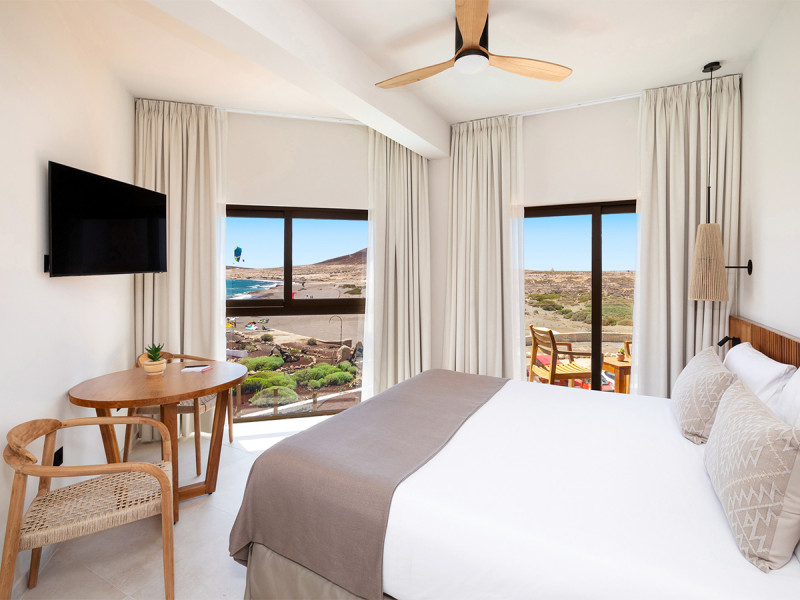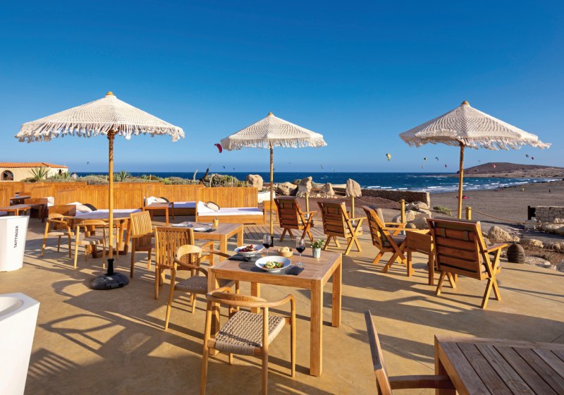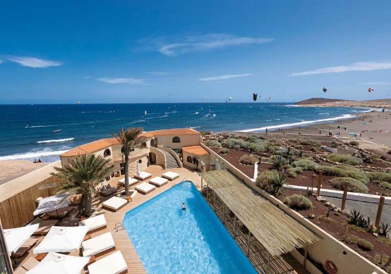 Im Playa Surf CBbC Hotel wohnt Ihr direkt am Naturbadestrand von El Médano, mit Blick auf die Monta f1a Roja. Das Haus richtet sich sp fcrbar an Surf- und Radsportfans: Board- und Bikestorage stehen bereit, der Tagesrhythmus folgt Wind und Wellen. Die Architektur bleibt angenehm kompakt, mit klaren Wegen von der Lobby zur Sonnenterrasse und zum Meerwasserpool.