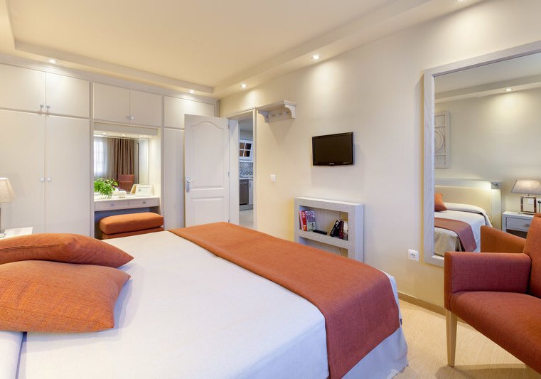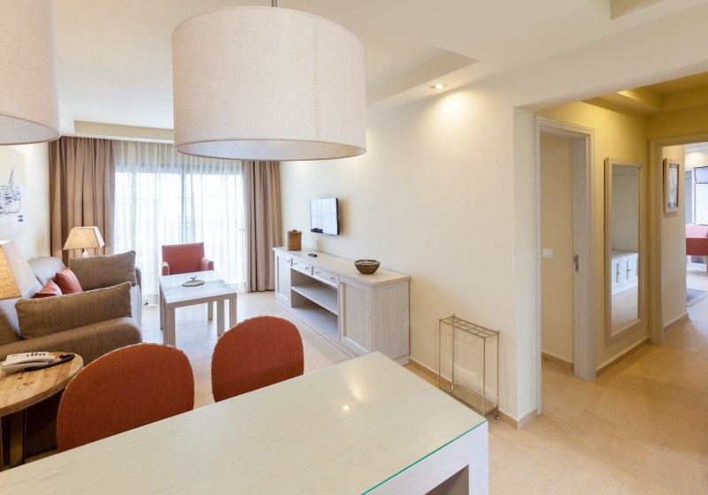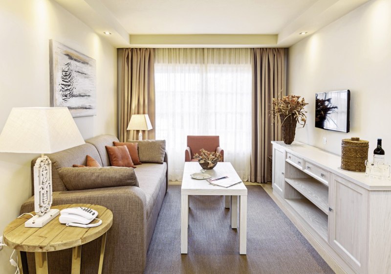 Die Appartements bieten etwa 47 Quadratmeter mit getrenntem Schlafzimmer und Wohnraum mit Schlafcouch. Balkon oder Terrasse öffnen den Raum nach draußen. Sat-TV, Telefon und inklusive WLAN halten Euch vernetzt, der Deckenventilator sorgt für leichten Luftzug.