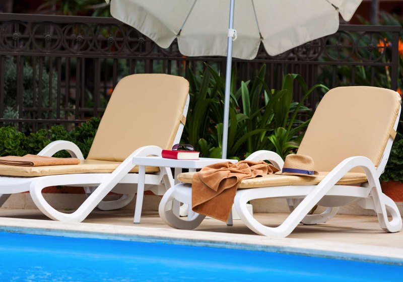 - Pool & Sonne: Süßwasserpool mit Sonnenterrasse, Liegen und Schirmen.