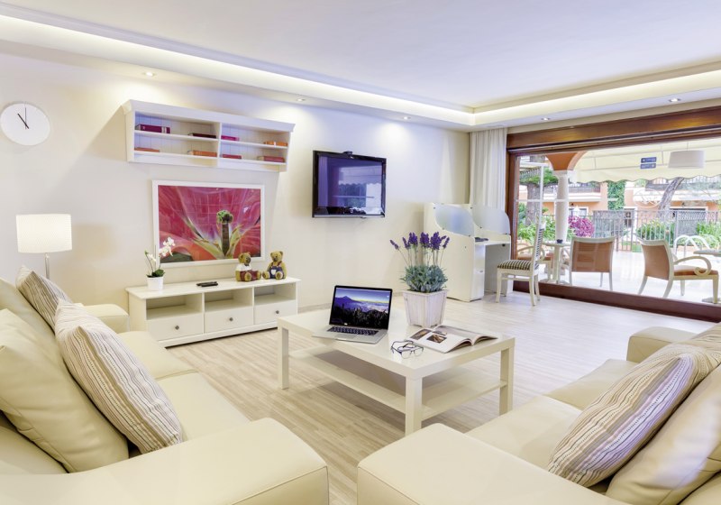 Im Apartamentos Ambassador wohnt Ihr in großzügigen Appartements mit Wohnraum und separatem Schlafzimmer – ideal, wenn Ihr Unabhängigkeit schätzt und Eure Tage flexibel gestalten wollt. Die ruhige Lage im Ortsteil La Paz von Puerto de la Cruz setzt den Ton: entspannt, gepflegt, mit viel Grün und klaren Strukturen.