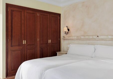 Ihr wohnt in Juniorsuiten oder Suiten mit einem oder zwei Schlafzimmern – ideal, wenn Ihr getrennte Rückzugsorte schätzt. Balkone oder Terrassen öffnen den Raum, Klimaanlage, Sat-TV, Safe und Direktwahltelefon bringen Verlässlichkeit. Badezimmer mit Badewanne oder Dusche, Bidet und Haartrockner runden den Komfort ab. Highlight: Suiten mit separaten Schlafzimmern geben Struktur und Ruhe.