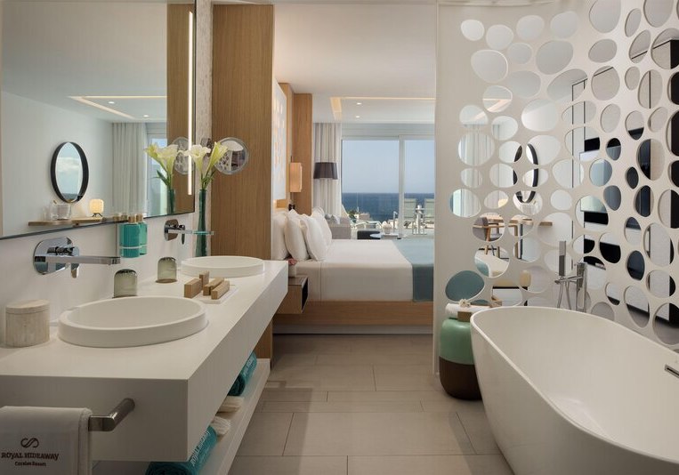 121 Juniorsuiten setzen auf Großzügigkeit und Meerblick. Ihr habt Sat-TV, kostenloses WLAN, Safe, Klimaanlage sowie Kaffee- und Teezubereiter. Die Minibar ist gegen Gebühr. Das offene Bad kombiniert Dusche und WC, in einigen Kategorien zusätzlich eine Badewanne. Bademäntel, Slipper und Föhn liegen bereit.