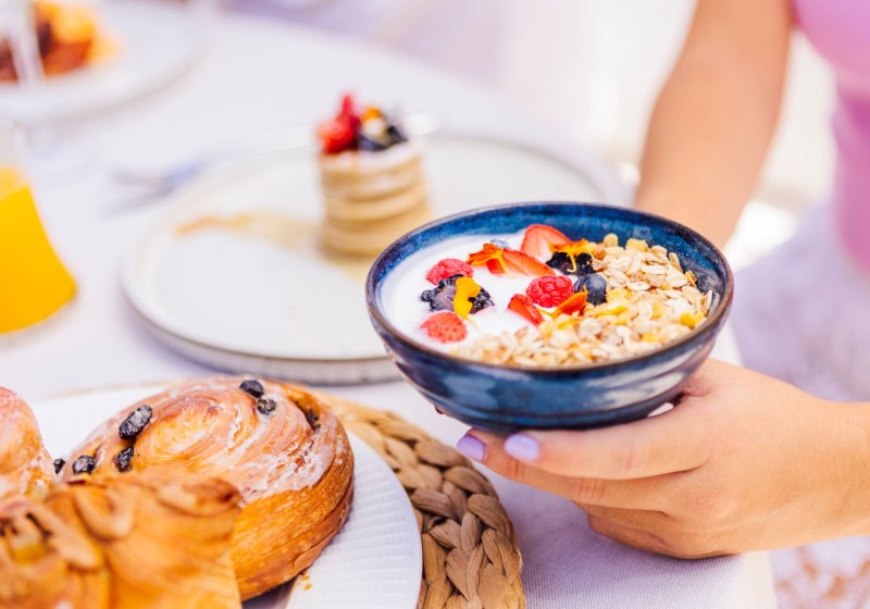 Zwei Poolbars versorgen Euch tagsüber. Die Verpflegungsoptionen reichen von Frühstück bis Halbpension, dazu vegetarische und glutenfreie Angebote. Die Bewertungen zum Essen fallen „Hervorragend“ aus – ein deutlicher Hinweis auf Qualität, Präzision und Service, die den kulinarischen Anspruch des Hauses einlösen.