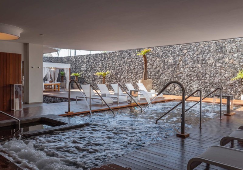 - Großzügiges Spa: Rund 1000 m² mit Wasserzonen, Sauna und Dampfbad.