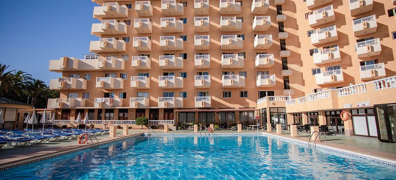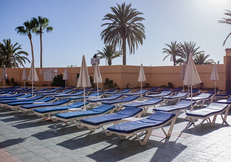 Im Servatur Caribe wohnt Ihr in großzügigen Apartments mit Kitchenette und Balkon oder Terrasse – ein klarer Vorteil, wenn Ihr Euren Tagesrhythmus frei gestalten wollt. Der Außenbereich mit Pool, Sonnenliegen und Schirmen wirkt aufgeräumt und unkompliziert. Service wie 24h-Rezeption, Concierge und Mietwagenverleih ergänzt die angenehme, praktische Atmosphäre.