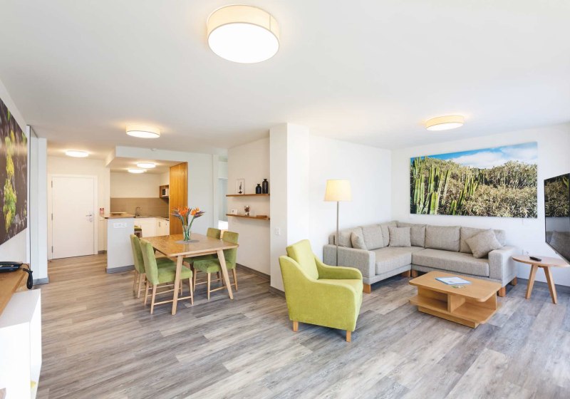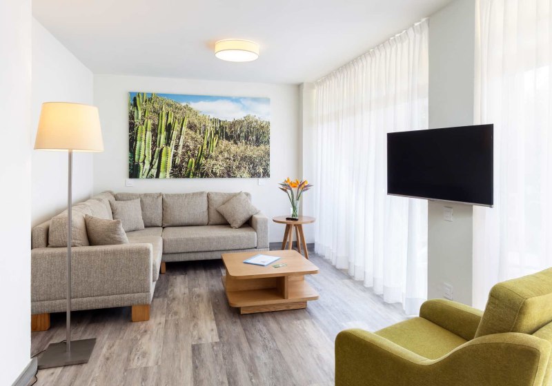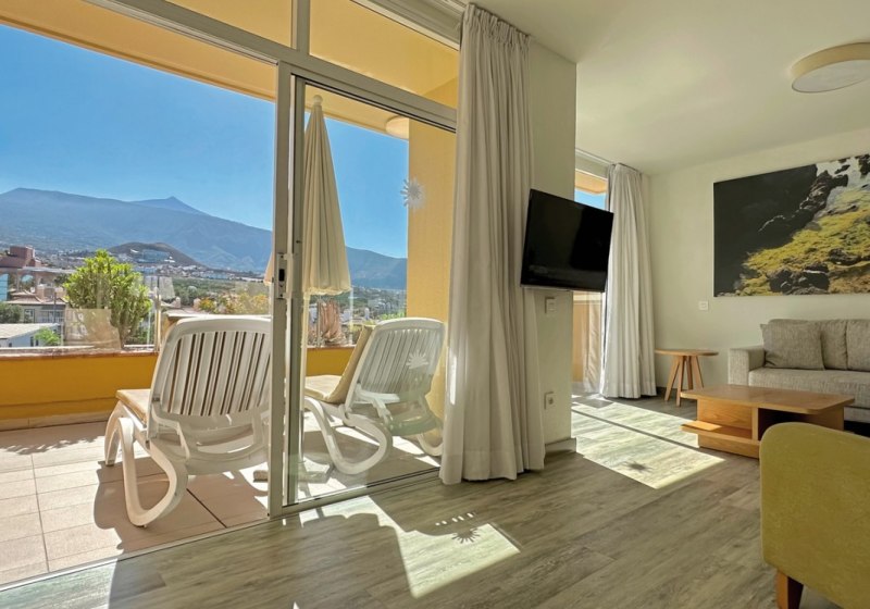 Im ruhigen Wohnviertel von Puerto de la Cruz empfängt Euch Tigaiga Suites mit dem angenehmen Gefühl von Raum und Unabhängigkeit. Die renovierten Appartements sind großzügig geschnitten und schaffen mit Wohn- und Essbereich sowie Kitchenette eine klare Struktur für Tage, an denen Ihr den Takt selbst bestimmt. Der Blick in die Gartenanlage, die möblierten Terrassen und der beheizbare Süßwasserpool geben Eurem Aufenthalt ein entspanntes Tempo, ohne von der Stadt abzuschneiden.