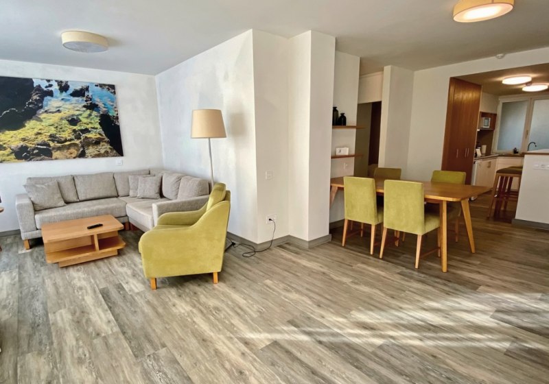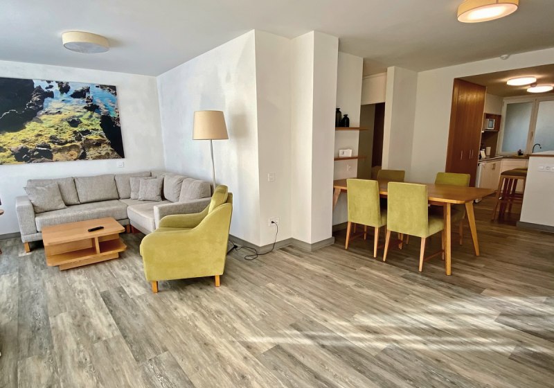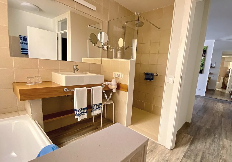 Zur Ausstattung zählen TV mit deutschen Programmen und Telefon. Das Bad bietet Badewanne und separate Dusche, dazu WC und Föhn. Der Service folgt einem klaren Rhythmus: Reinigung an sechs Tagen pro Woche, Handtuchwechsel dreimal wöchentlich, Bettwäschewechsel einmal pro Woche. So bleibt Euer Apartment gepflegt, ohne Eure Privatsphäre zu stören.