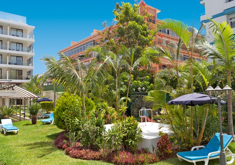 Ihr wählt zwischen Ruhe auf der Außenterrasse oder lebendigem Flanieren entlang der Fußgängerzone. Die Abende klingen bei Livemusik und Tanz aus, während Ihr Euch kulinarisch im Restaurant „Café Jardin“ oder in der Cafeteria versorgt. WLAN ist im gesamten Haus verfügbar. Hunde bis 5 kg sind auf Anfrage erlaubt, ausgenommen Poolbereich und Restaurant. Mit 171 Zimmern auf sieben Etagen und zwei Aufzügen bleibt das Haus persönlich und gut organisiert.