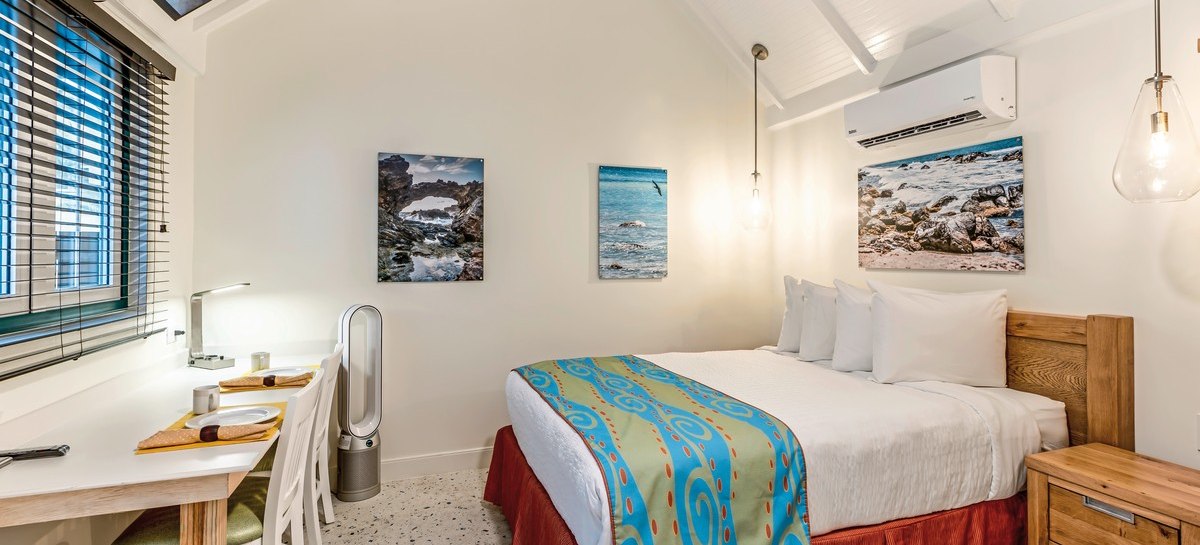 Die Lage am Eagle Beach schafft kurze Wege: einmal über die Straße, und Ihr seid im Sand. Wer es ganz ungestört mag, zieht sich in die begrünten Bereiche der Anlage zurück. So verbindet Ihr Strandnähe mit ruhigen Pausen ohne lange Wege oder festes Ritual.