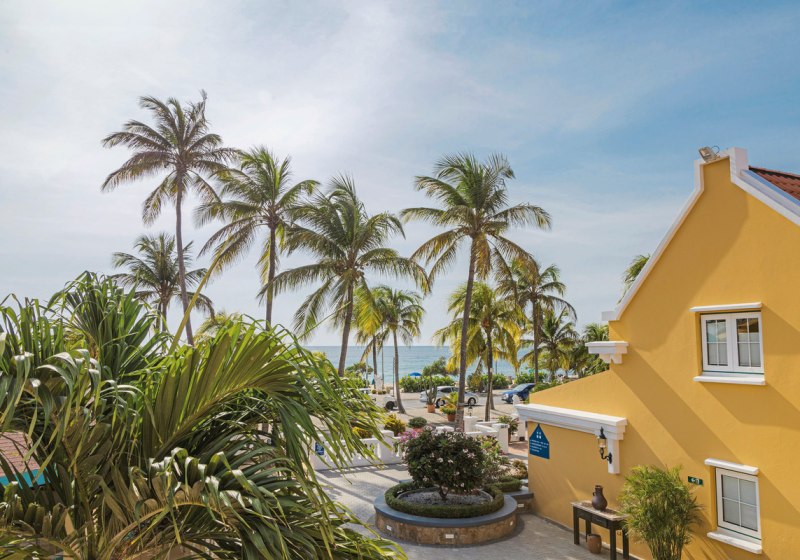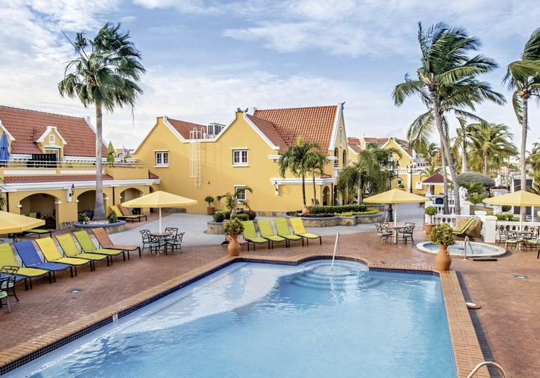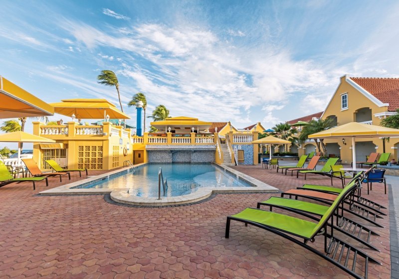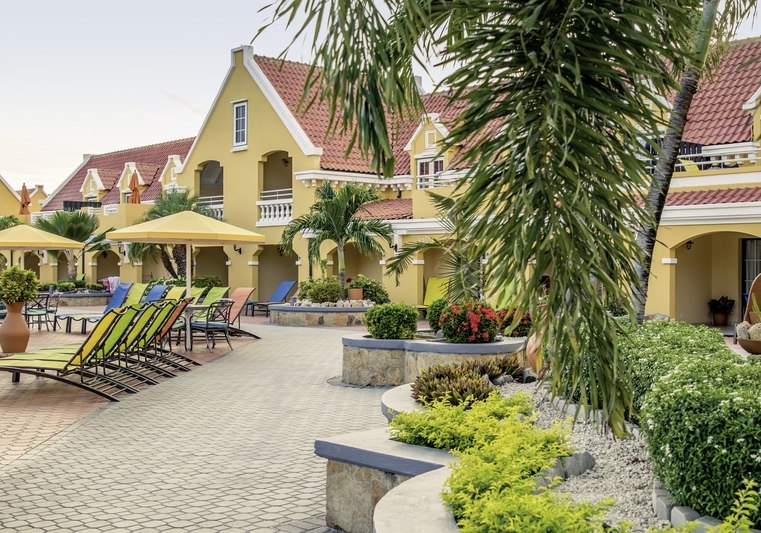Im Amsterdam Manor Beach Resort wohnt Ihr in einem entspannten Strandresort mit persönlicher Note, direkt gegenüber dem feinsandigen Eagle Beach. Der Blick fällt auf Palmen, Gartenwege und die helle Fassade, die 2022 aufgefrischt wurde. Die Anlage wirkt überschaubar, Wege sind kurz, und dank WLAN in der gesamten Anlage bleibt Ihr überall verbunden.