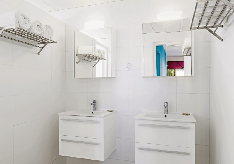 Für Familien oder befreundete Reisende stehen Vierbettzimmer mit zwei separaten Schlafzimmern bereit. Ein Bügeleisen mit Brett ergänzt die durchdachte Ausstattung für längere Aufenthalte. Der Gesamteindruck ist ruhig, gepflegt und auf leichte Pflege ausgerichtet – ideal, wenn Ihr den Strand zum Mittelpunkt macht und Euer Zimmer als geordneten Rückzugsort schätzt in den Ferien.