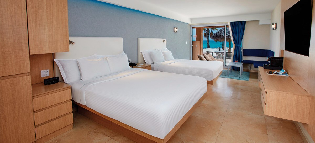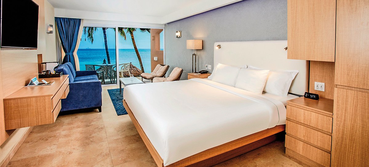 Die Zimmer im Tamarijn Aruba All Inclusive sind auf erholsame Tage am Meer abgestimmt. Standard sind Meerblick sowie ein möblierter Balkon oder eine Terrasse. Klimaanlage mit individueller Steuerung, Smart-TV, Safe und ein Mini-Kühlschrank sorgen für Komfort. Eine Kaffeemaschine, Fliesenboden und eine bodengleiche Dusche mit Haartrockner runden die Ausstattung ab.